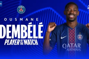 体育资讯4月29日讯 欧冠半决赛首回合,巴黎圣日耳曼5-4拜仁。登贝莱首发出战,赛后被评为全场最佳球员。