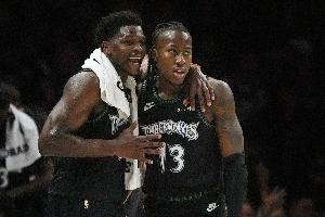 第三节比赛,已经伤缺迪文岑佐和爱德华兹两名主力的森林狼将康利和道苏姆提上首发,球队竟然在第三节打出32-24的比分净胜掘金8分,最终反超4分领先进入到末节。