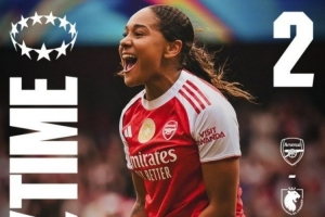 女足欧冠半决赛首回合:阿森纳女足逆转2-1击败里昂女足